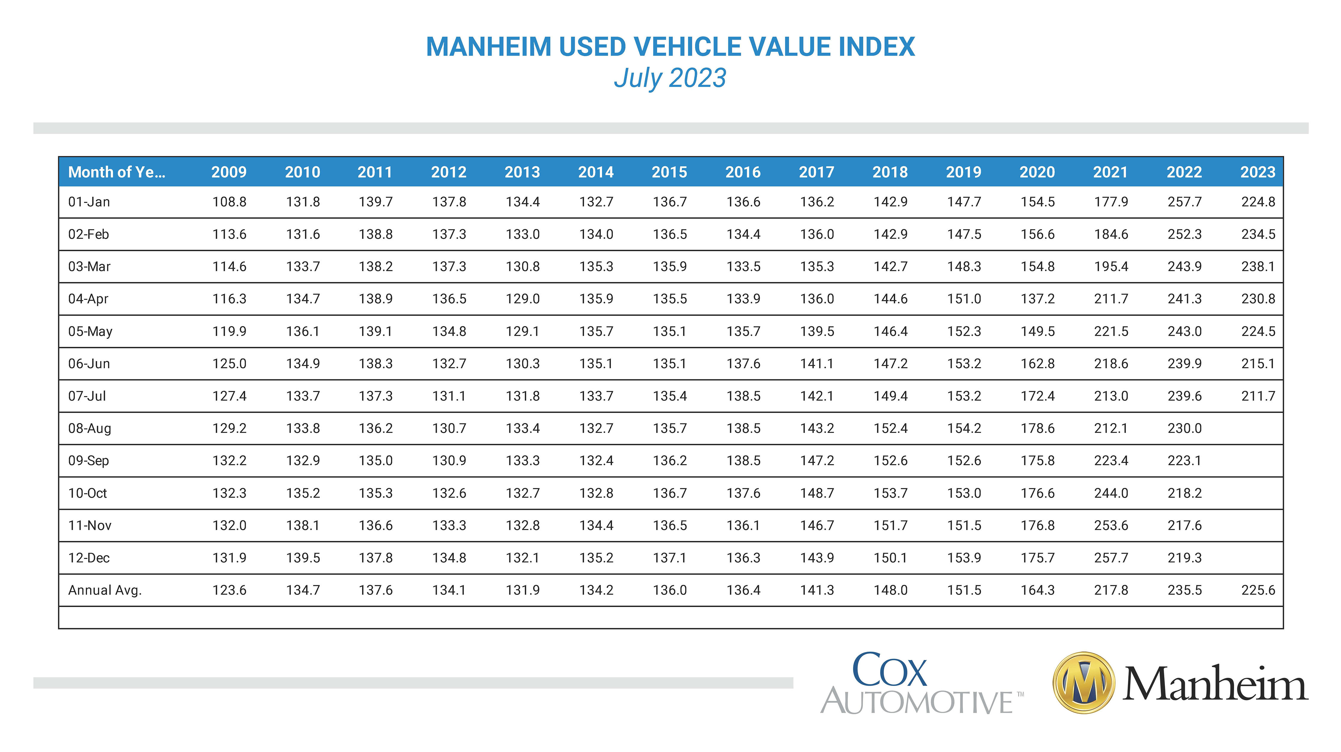 Manheim Used Car Index - Manheim used vehicle value index (muvvi): Compiled by manheim, this index reflects market price trends by monitoring. The manheim used vehicle value index (muvvi) rose to 208.2, marking a 4.9% increase from. Discover data on manheim used vehicle value index in united states. By applying statistical analysis to its database of more than 5 million used vehicle transactions annually, manheim has developed a measurement of used vehicle prices that is. The manheim used vehicle value index is a measure of used vehicle prices in the us which fall into one of the 20 market classes (i.e., excludes heavy trucks, motorcycles, etc).